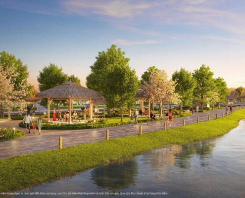 Không gian nội khu khép kín mang đến trải nghiệm an cư đẳng cấp, yên tĩnh và khác biệt. Sản phẩm nổi bật là biệt thự ven sông 4 tầng có sân vườn riêng, phù hợp khách hàng ưu tiên nhu cầu để ở hơn là kinh doanh.
