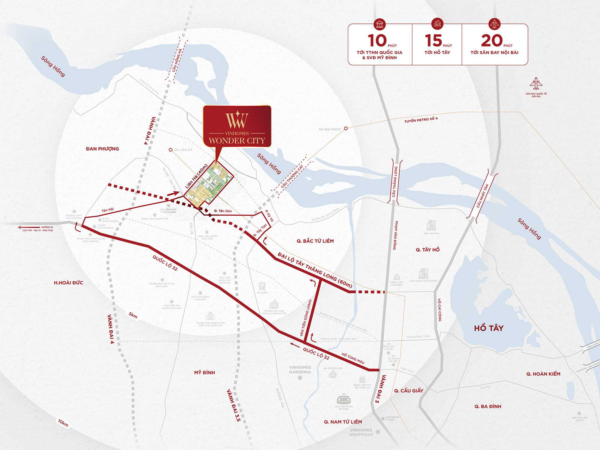 Vinhomes Đan Phượng sở hữu vị trí chiến lược ngay cửa ngõ Tây Hà Nội, nơi hạ tầng đang bứt tốc mạnh mẽ.